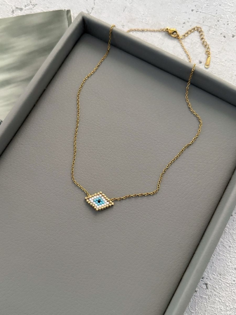 - Κολιέ με κεντητό ματάκι από χάντρες