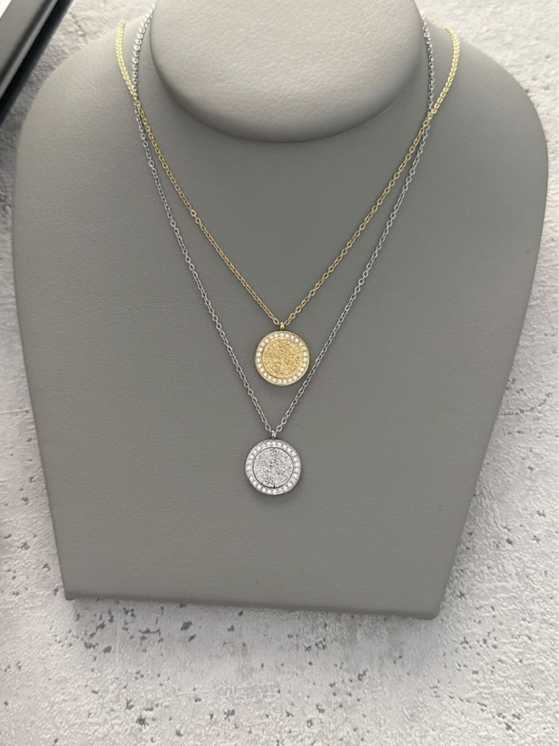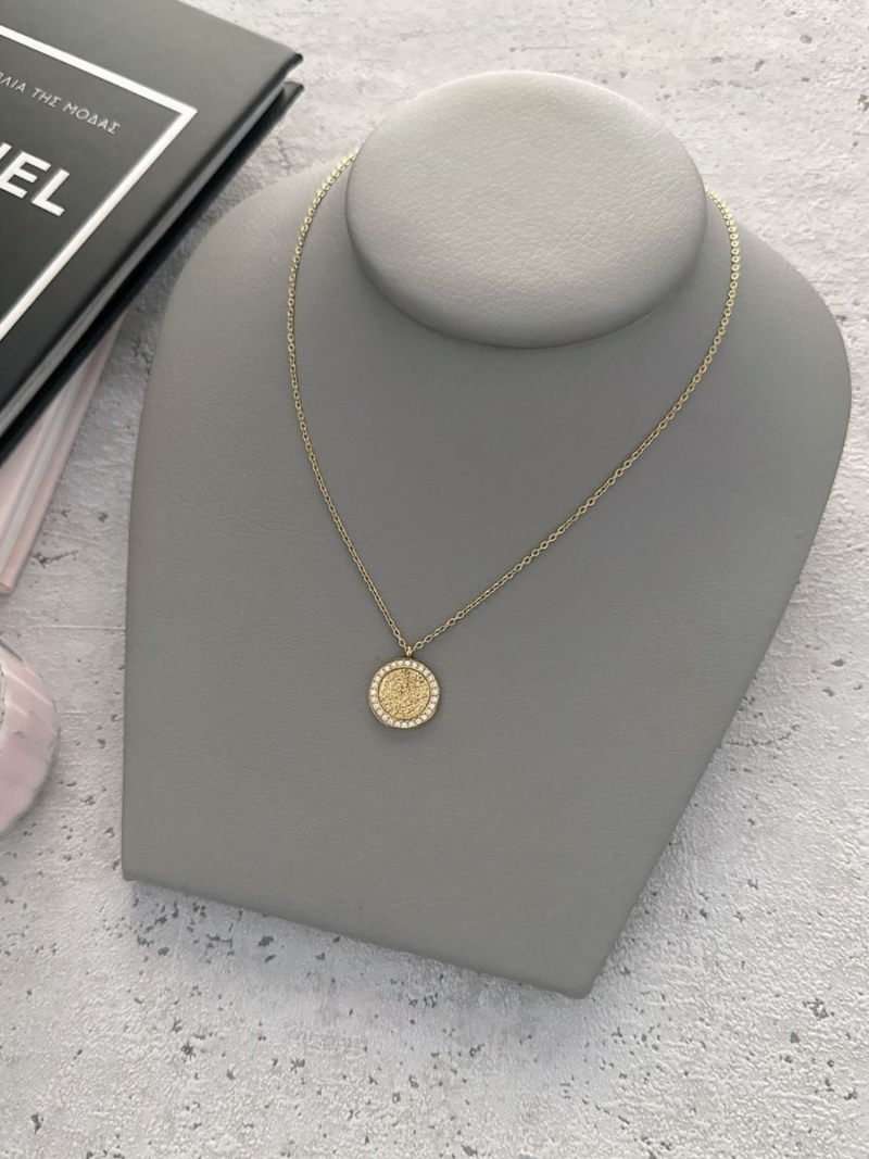 • Κολιέ ατσάλι, με μοτίφ με ζιργκόν