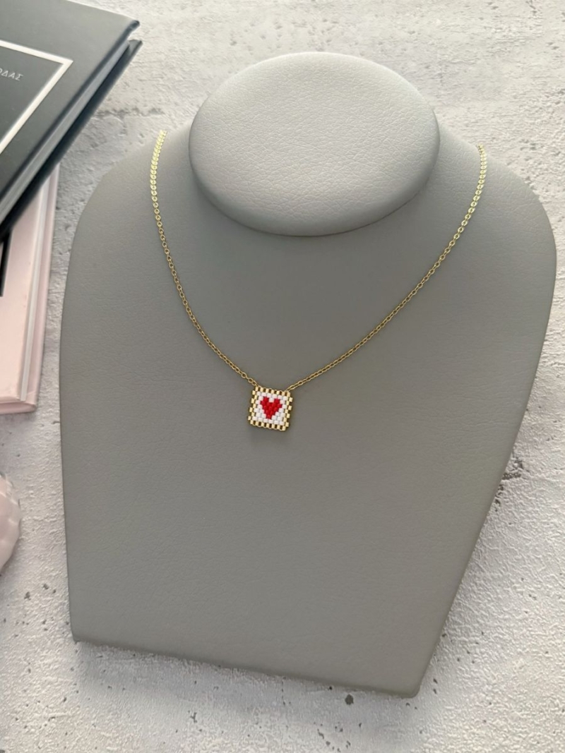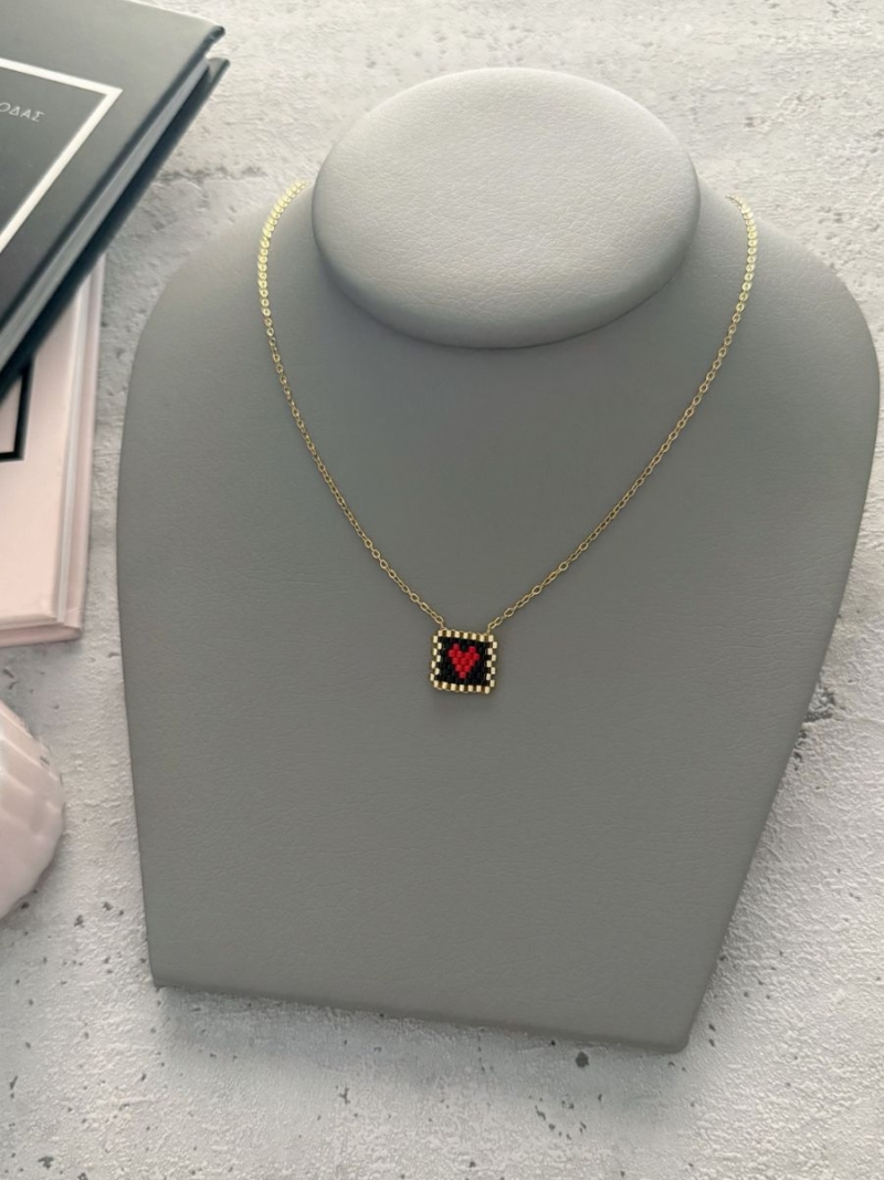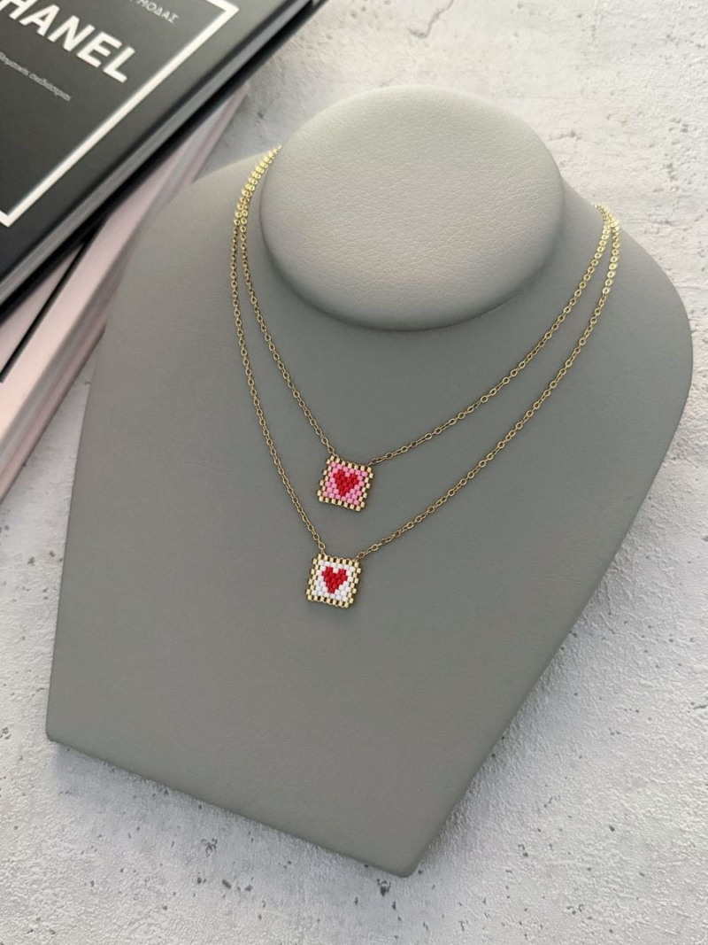 - Κολιέ με κεντητή καρδιά από χάντρες