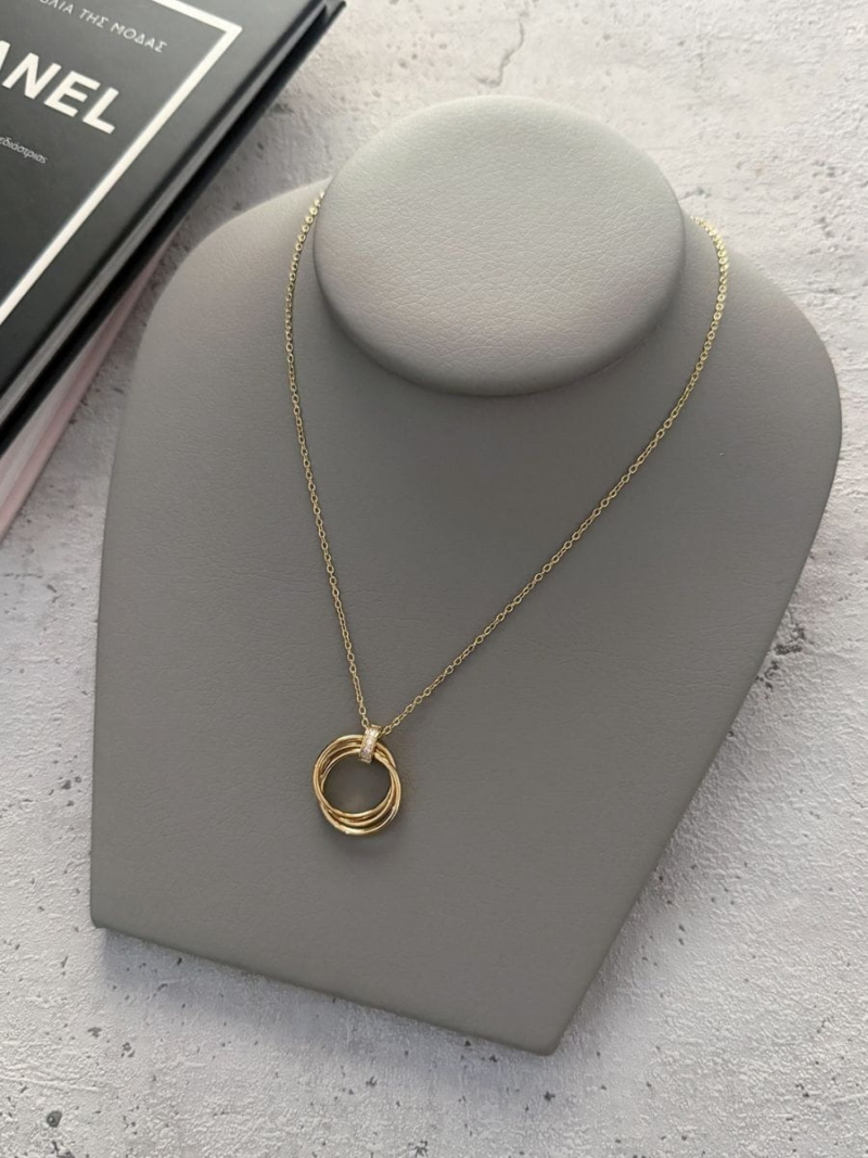 - Κολιέ ατσάλι με 3 κρίκους και λεπτομέρεια με στρας