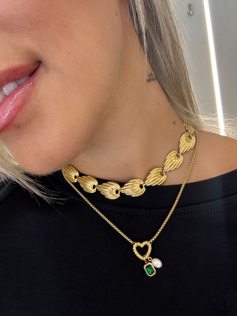 - Κολιέ ατσάλι με κρεμαστά