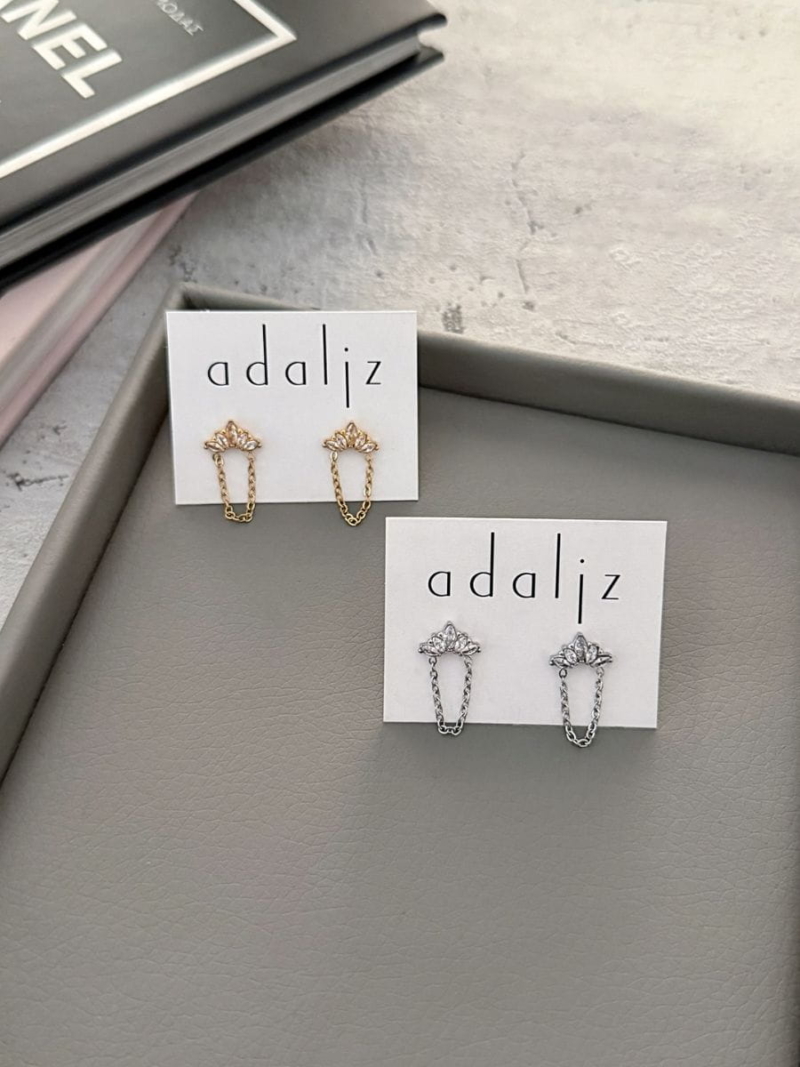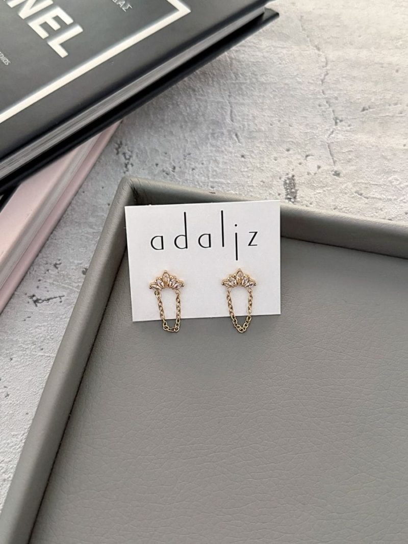 Ρομαντικά καρφωτά σκουλαρίκια με διακριτική αλυσίδα, δημιουργεί τριπό εφέ στο αυτί. Λαμπερές λεπτομέρειες και elegant design για καθημερινές και βραδινές εμφανίσεις.