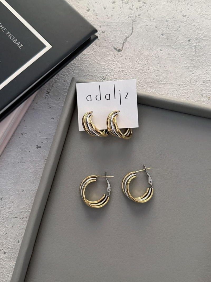 Minimal σκουλαρίκια ατσάλι κρίκοι με τριπό σχεδιασμό σε χρυσό και ασημί χρώμα. Διαχρονικό κόσμημα για κάθε στυλ.