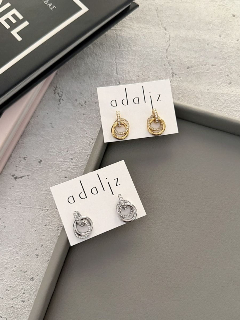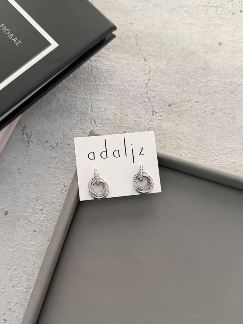 Minimal καρφωτά σκουλαρίκια με διπλούς κρίκους και λαμπερές λεπτομέρειες ζιργκόν που χαρίζουν διακριτική λάμψη σε κάθε εμφάνιση.