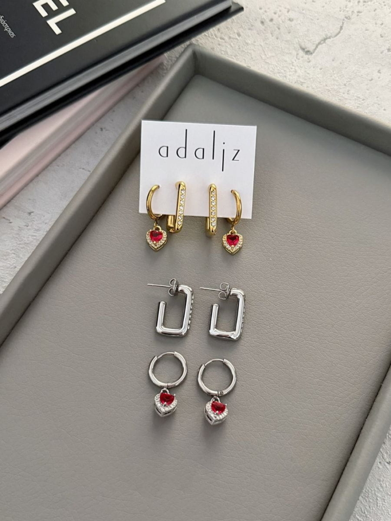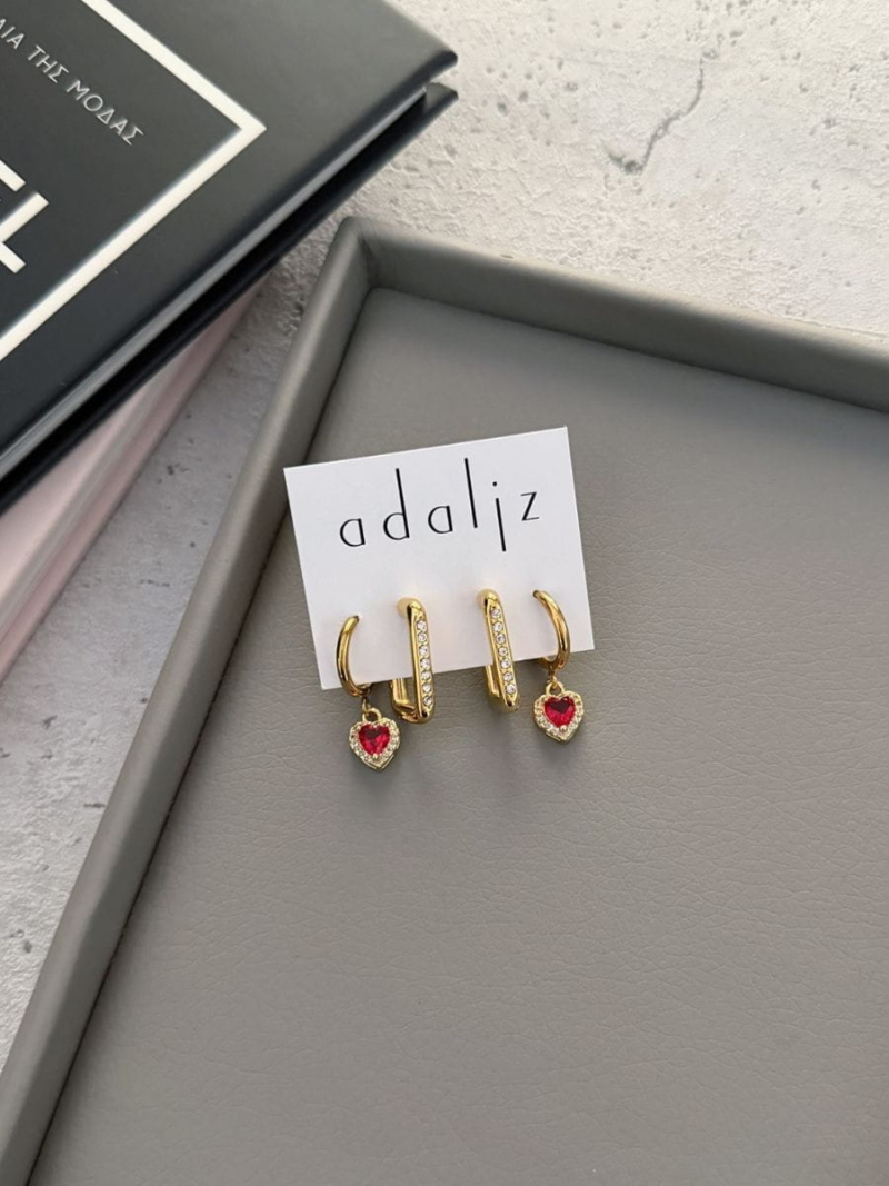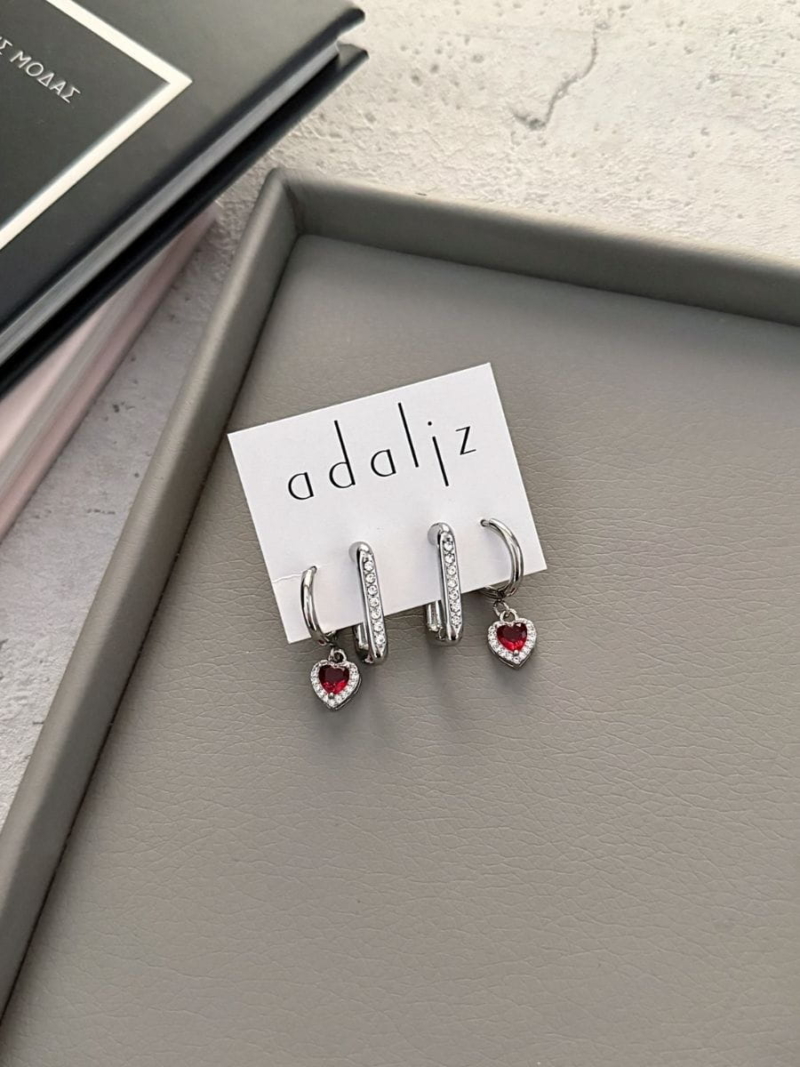 Διαστάσεις : ορθογώνιο ύψος 2 εκ. πλάι 1,1 εκ. |κρικάκι με καρδιά 2,5 εκ. ύψος | κρικάκι 1,5 εκ. | καρδιά 0,7 εκ.