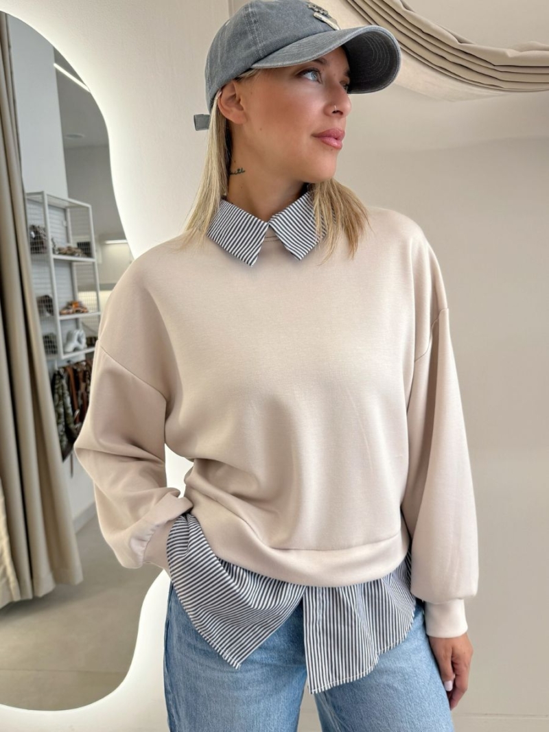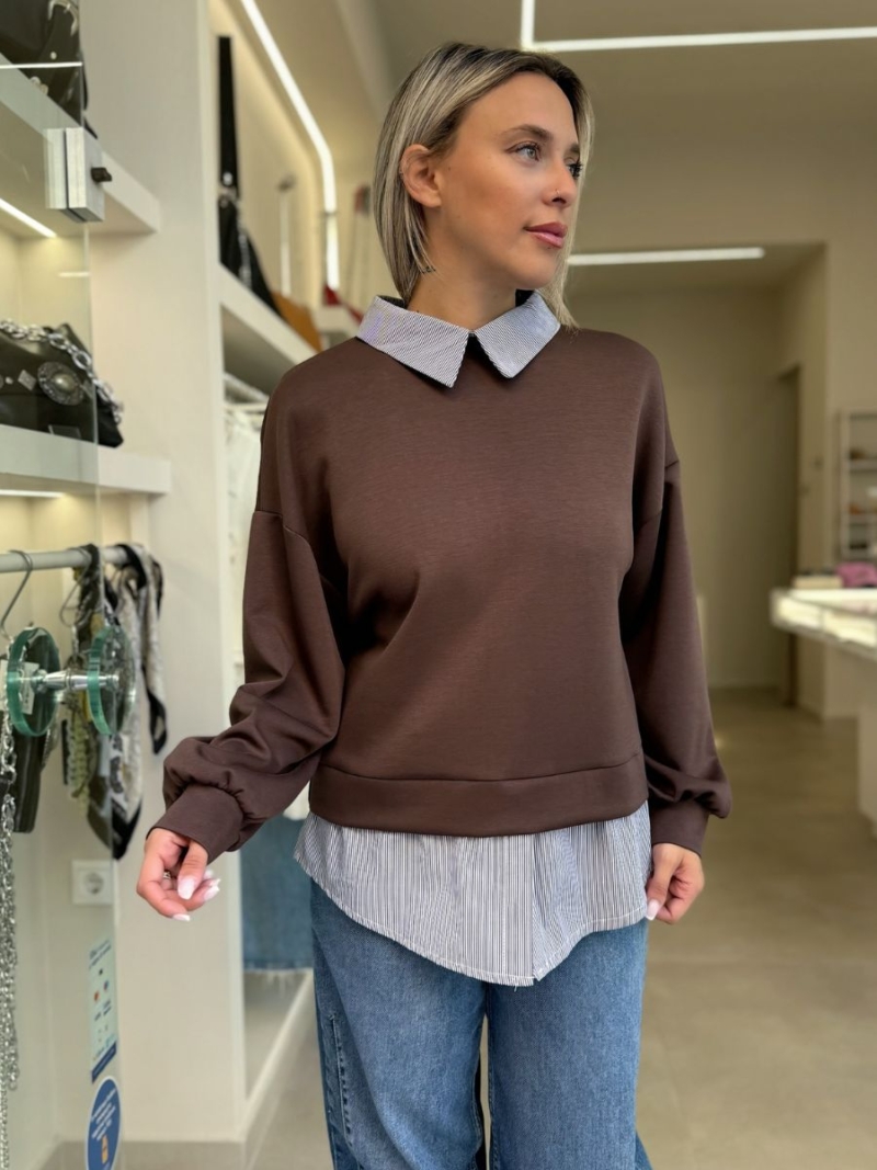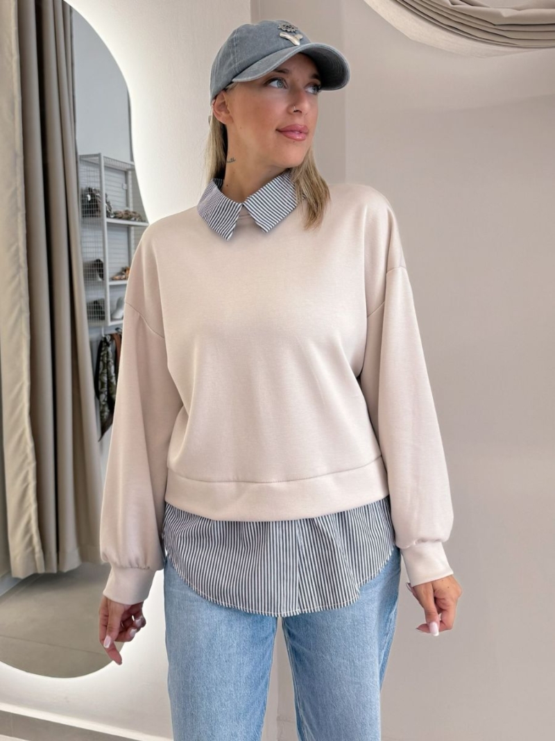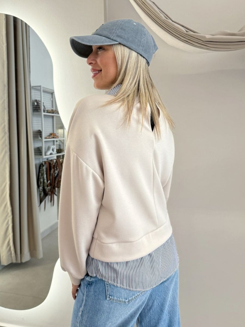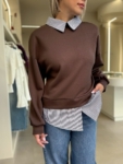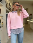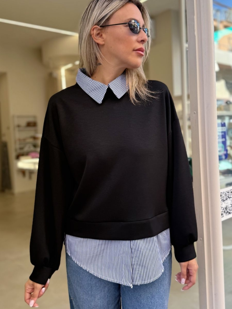 - Μπλούζα με λεπτομέρειες πουκάμισου στον γιακά και στο τελείωμα