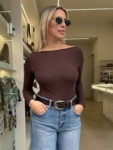 - Εφαρμοστό μπλουζάκι με μακρύ μανίκι και ελαφρώς ανοιχτή λαιμόκοψη