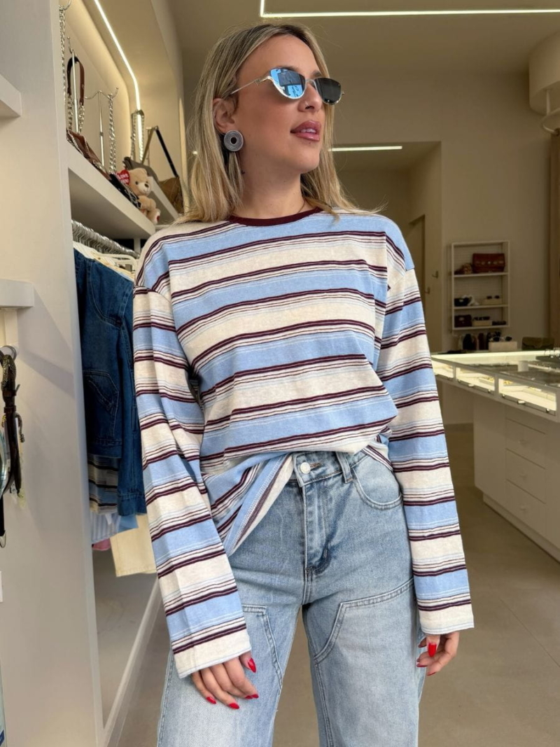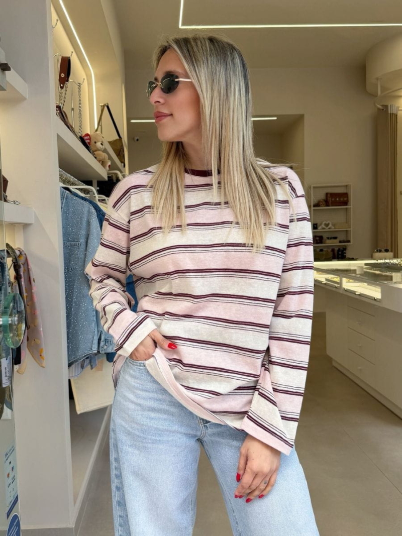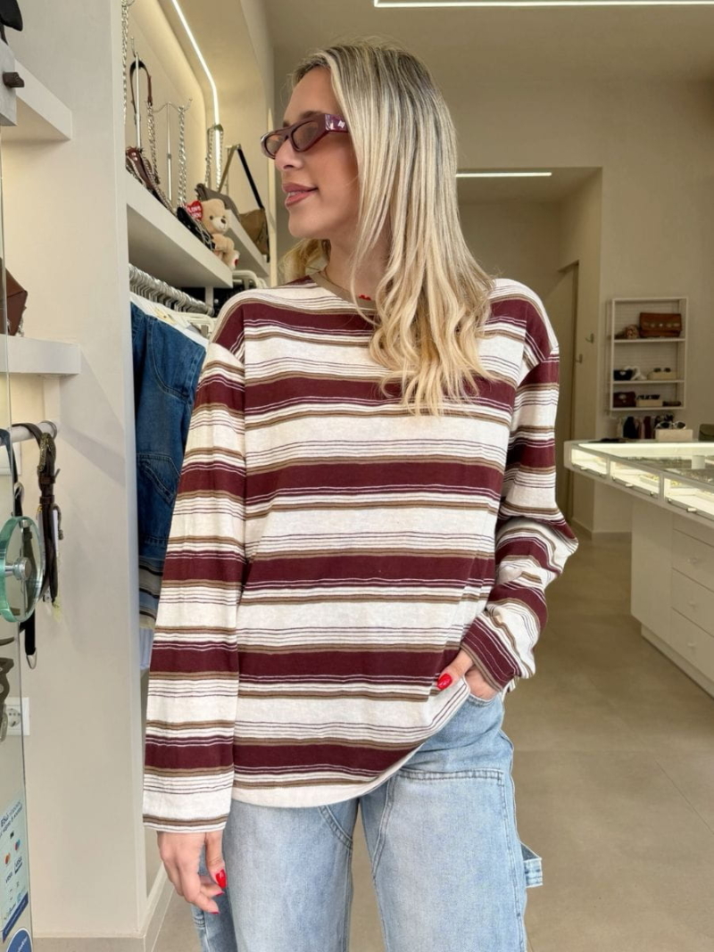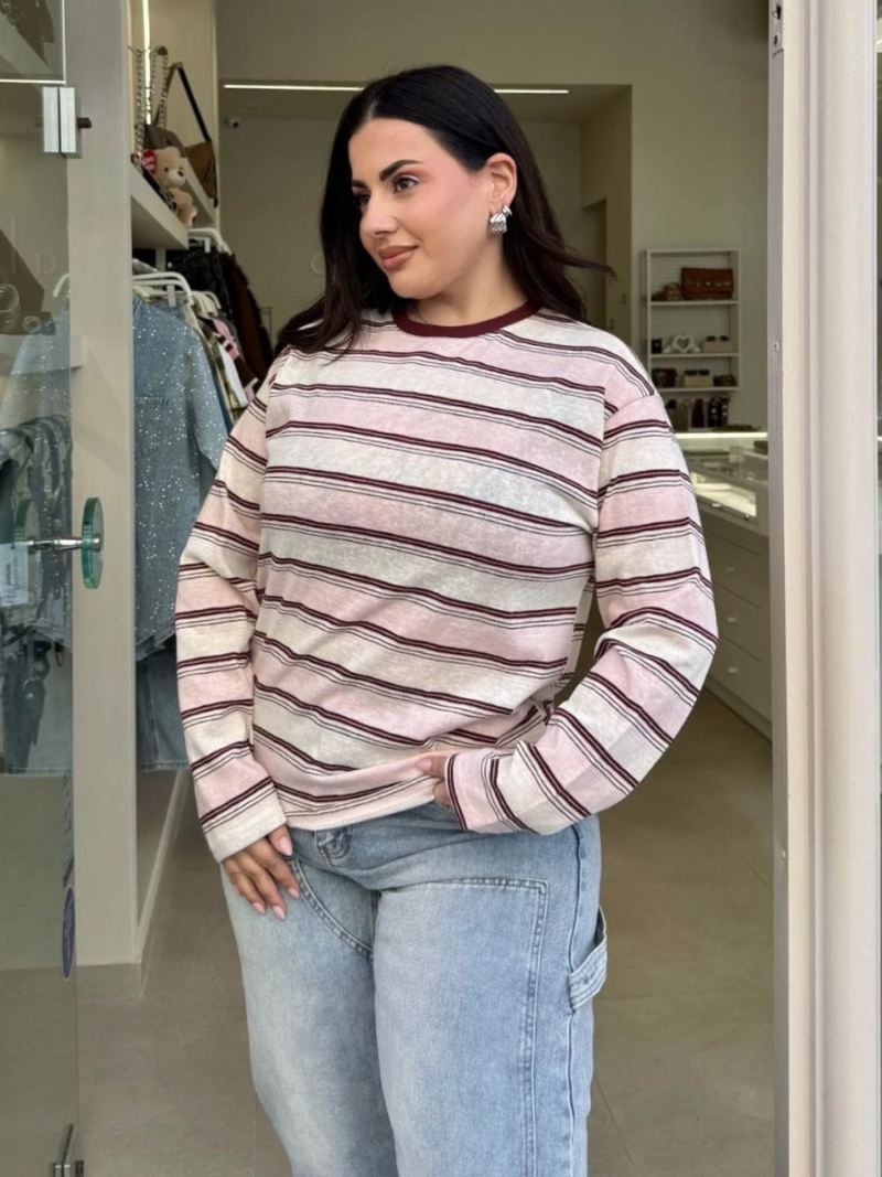 Ριγέ μπλούζα με χαλαρή γραμμή και vintage αισθητική. Άνετη και ευκολοφόρετη, ιδανική για καθημερινά casual looks.