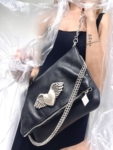 Angel μαύρη δερμάτινη τσάντα