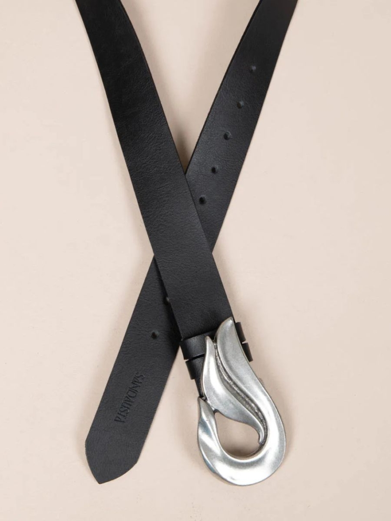 • Ζώνη δερμάτινη με μεταλλική αγκράφα